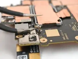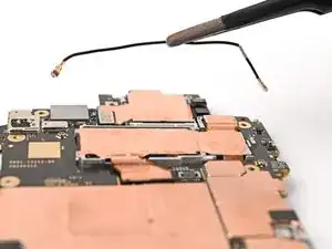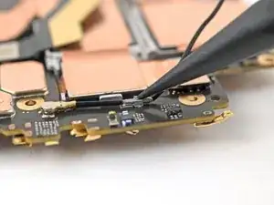 Просуньте одну сторону углового пинцета под металлическую шейку разъёма чёрного кабеля антенны на плате USB‑C.