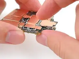 Продолжайте снимать графитовую пластину с логической платы, чтобы отделить оставшийся клей.