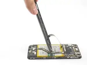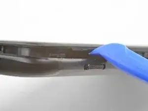Последняя защёлка в верхнем левом углу возле фронтальной камеры утоплена и может быть трудна для освобождения. Не торопитесь и при необходимости используйте плоский конец лопатки или открывающую лопатку для помощи.