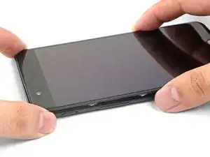 Освободив нижний и левый край телефона, аккуратно пошевелите рамку, чтобы освободить защёлки верхнего и правого края.