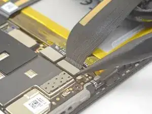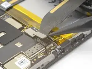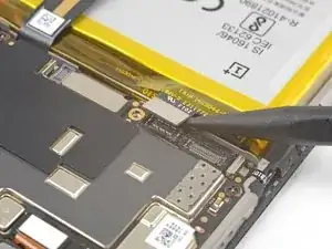 Используйте острие лопатки, чтобы поддеть и отключить гибкий кабель задней крышки от его разъёма.