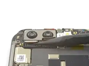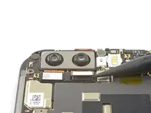 Подденьте кончик лопатки под верхний левый угол модуля камеры и отогните вверх, чтобы освободить его из гнезда.
