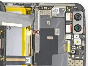 Удалите винт Phillips длиной 2,6 мм, фиксирующий держатель кабеля над батареей.