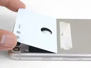 Нагрейте iOpener и приложите его к задней стеклянной панели телефона на две минуты.