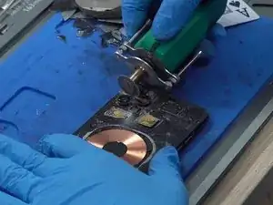 После снятия заднего стекла Вы увидите датчик беспроводной зарядки в центре устройства.