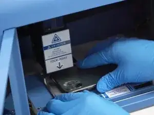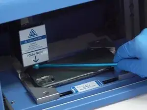 После завершения лазерной обработки извлеките телефон и слегка постучите по заднему стеклу стержнем фокусировки. На стекле появятся трещины, и отделить его станет проще.