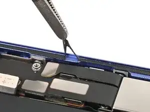 Используйте отвертку P2 pentalobe, чтобы выкрутить два винта длиной 7,7 мм по обе стороны от порта USB-C.
