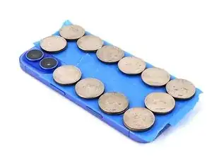 Равномерно распределите монеты и убедитесь, что их толщина как минимум соответствует высоте выступа камеры.