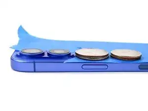 Приложите нагретый iOpener к верхнему краю заднего стекла под углом так, чтобы он охватывал кнопки регулировки громкости, в течение двух минут.
