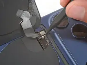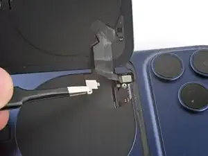 Используйте кончик лопатки, чтобы поддеть и отключить контактный разъём беспроводной зарядки.