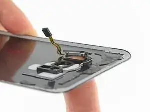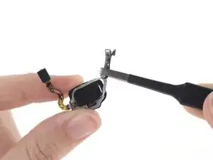 Используйте острие лопатки (spudger), чтобы поддеть и отсоединить шлейф датчика отпечатка пальца.
