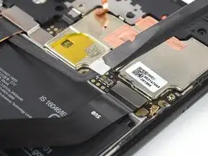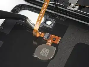 Отключите гибкий кабель датчика отпечатка, потянув его прямо из ZIF-разъёма с помощью пинцета.