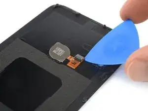Не пытайтесь пока полностью снимать заднее стекло. Датчик отпечатка пальца всё ещё соединён с платой.