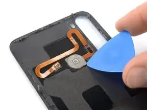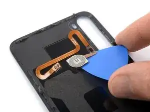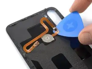 Используйте лопатку, чтобы разрезать клей датчика отпечатков и приподнять его.