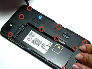 Используйте отвертку Torx T4, чтобы открутить девять винтов вокруг батареи.