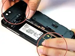 Извлеките аккумулятор из корпуса телефона.