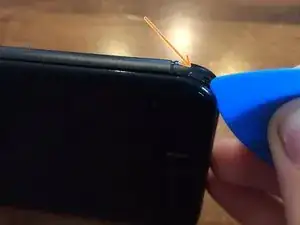 Используйте инструмент для открытия, чтобы отсоединить верхнюю пластиковую пластину от телефона.