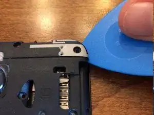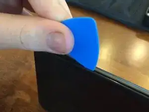 Вставьте инструмент в верхний левый угол, где находится маленькое углубление.