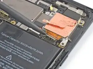 Отогните графитовую пленку в направлении селфи-камеры, чтобы получить доступ к батарее.