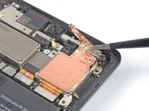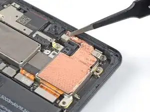 При сборке убедитесь, что медная фольга не касается никаких компонентов, кроме модуля тыльной камеры и тех компонентов, к которым она изначально была приклеена.