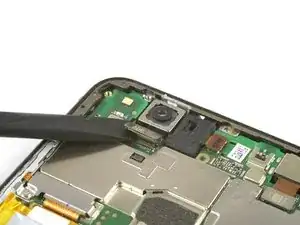 Используйте плоский конец лопатки, чтобы отключить шлейф задней камеры.