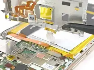 Под задней крышкой есть клей, который фиксирует ее на батарее и металлической пластине вверху.