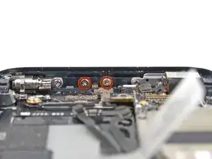 Удалите два винта Филлипс 1,3 мм с внутренней верхней части задней крышки.