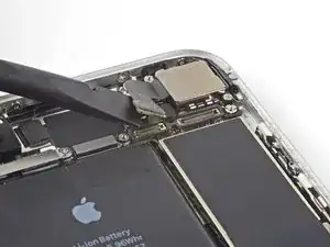 Слегка отогните кабель разъёма батареи от логической платы, чтобы он случайно не коснулся гнезда и не подал питание на телефон во время ремонта.