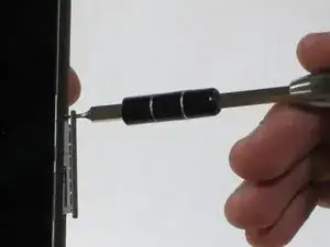 Вставьте инструмент для извлечения SIM-карты (головка 0.8мм) в небольшое отверстие на лотке для SIM-карты.