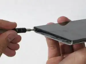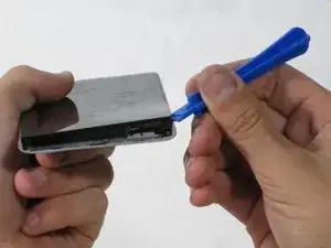 Вставьте пластиковый инструмент для открытия в шов между стеклянным экраном и металлическим корпусом.