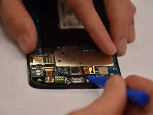 Вставьте край пластикового инструмента для вскрытия под разъём камеры, который прикреплён к камере тонкой гибкой плёнкой.