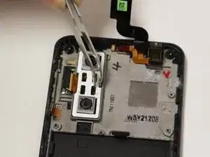 Используя пинцет или подъемный инструмент, аккуратно покачайте и поднимите сборку камеры от корпуса телефона.