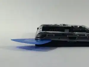 Вставьте пластиковый инструмент для открытия в небольшой вырез в нижней части аккумулятора.