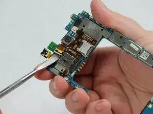 Осторожно подденьте материнскую плату металлической лопаткой, чтобы отделить её от корпуса телефона.