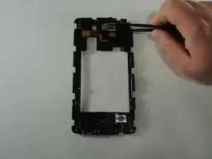 Подденьте вверх, снимая среднюю рамку с телефона.