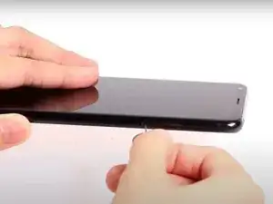 Вставьте инструмент для извлечения SIM-карт в небольшое отверстие на правой стороне телефона, чтобы освободить лоток для SIM-карт.