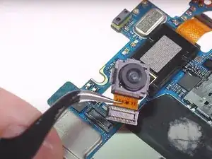 Соединитель с защелкой уже отключен, но модуль камеры все еще немного приклеен к материнской плате.