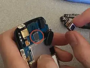 Осторожно подденьте её ногтем, следя за тонкими проводами (например, проводами, соединяющими плату с динамиками или другими компонентами).