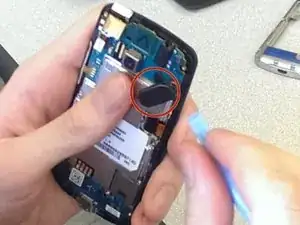 Извлеките аккумулятор с помощью синего пластикового инструмента для вскрытия.