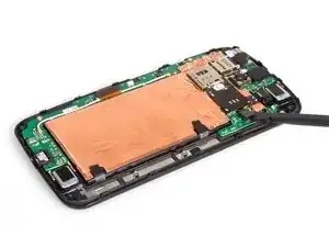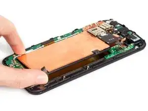 Ослабьте разные наклейки под аккумулятором и снимите его вместе со сборкой считывателя карт.
