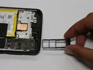 Полностью выньте лоток SIM-карты из телефона, как показано на изображении.