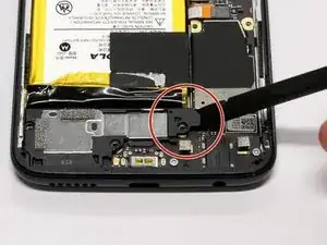 С помощью лопатки приподнимите правую сторону динамика и извлеките динамик из устройства.