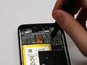 Вставьте медиатор для вскрытия под экран, начиная с верхней части телефона.