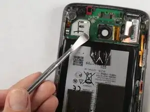 Будьте осторожны, чтобы не отделять нижний край дисплея более чем на 0,5 дюйма (13 мм) от задней крышки. Шлейф дисплея всё ещё подключён и может быть повреждён, если нижняя часть телефона будет открыта слишком широко.