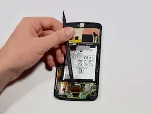 Поскольку верхний дисплей узла гибкий и прикреплён лишь небольшим количеством клея, вы можете поддеть только сам дисплей вместо подъёма всего узла. Если это произойдёт, извлеките инструмент и повторите операцию, на этот раз применив большее вертикальное усилие, чтобы попасть под весь узел.