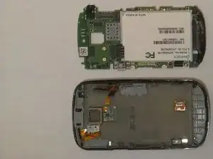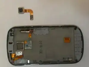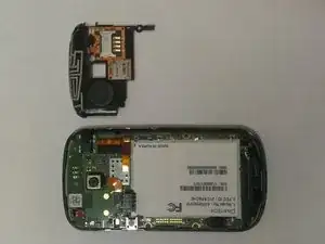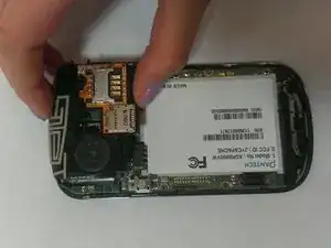 После извлечения винтов снимите чёрную пластиковую деталь, в которой расположены динамик, слот для microSD и слот для SIM-карты.