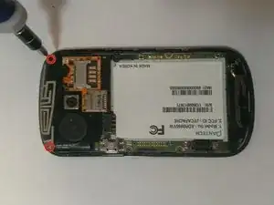 После снятия передней рамки и задней крышки найдите и выверните два винта Phillips #000 в верхних углах телефона.