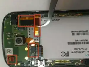 Используя пинцет, аккуратно подденьте каждую ленту и вытяните её из разъёма. После этого материнская плата свободно отделится от задней стороны экрана.