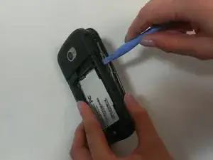 Просуньте пластиковый инструмент для открывания между передней рамкой и задним корпусом и медленно продвигайтесь по плотным краям.