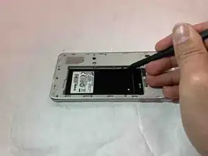 При выкручивании винтов на предыдущем шаге могла отслоиться пара контактных защёлок. Используйте лопатку, чтобы поднять их и убедиться, что они отделены от основного корпуса телефона.